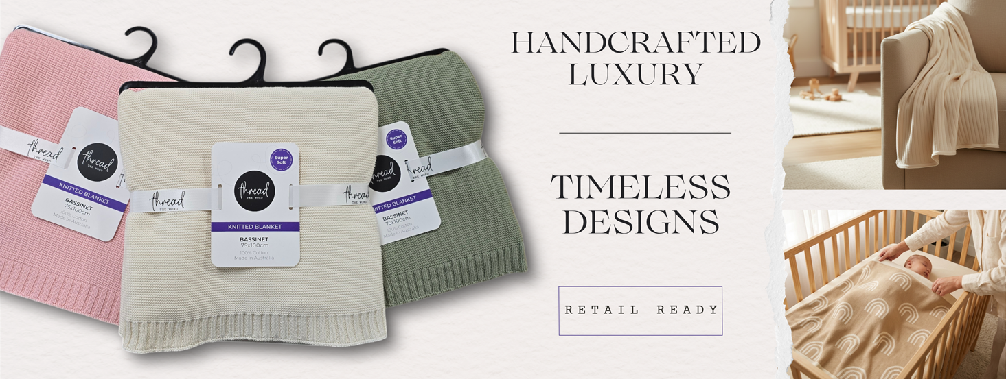 Order blankets in bulk for ready-to-sell stock items. Ideal for in-store displays, these pieces offer flexibility, fast availability, and an easy way to increase sales without custom lead times.